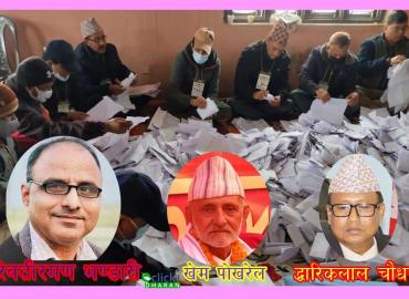 धरान: नेकपा एमाले सुनसरीको ७ औं जिल्ला अधिवेशन अन्तर्गत भएको निर्वाचनको मतगणना जारी छ । पार्टी कार्यालय इनरुवामा जारी मतगणनामा १५ सय मतको परिणाम सार्वजनिक भइसकेको छ । जसअनुसार अध्यक्ष पदका उम्मेदवार रेवतीरमण भण्डारीले निकटतम प्रतिद्धन्दी खेमराज पोख्रेलसँगको मतान्तर बढाउदै लगेका छन् । १५ सय मत ...