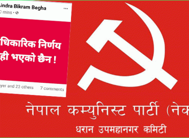 धरान: नेपाल कम्युनिष्ट पार्टी(नेकपा) धरान उपमहानगरपालिका कमिटीले कार्यसमिति सदस्य संख्या विस्तार गरेको छ । आज बिहान बसेको पार्टीको कार्यालय बैठकले २ रिक्त पद र विधान वमोजिमको कमिटि सदस्यहरु मनोनित गरेको अध्यक्ष नारायण सुवेदीले जानकारी दिए । बैठकले रिक्त पदमा जीवन भट्टराई र जसरथ थलङलाई मनोनित गरेको ...