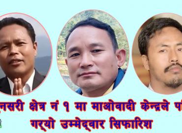 धरान: नेकपा (माओवादी केन्द्र)ले सुनसरी निर्वाचन क्षेत्र नं १ मा प्रतिनिधिसभा सदस्य (संघीय सांसद)को लागि प्रत्यक्षतर्फ ३ जना उम्मेद्वारका आकांक्षीहरुको नाम सिफारिश गरेको छ ।नेकपा (माओवादी केन्द्र) सुनसरी १ नम्बर क्षेत्र निर्वाचन परिचालन समितिको आज (सोमबार) बसेको बैठकले प्रतिनिधिसभा प्रत्यक्षतर्फ मुक् ...
