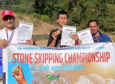 धरान: नेपालमा पहिलो पटक आयोजना भएको स्टोन स्किपिङ (पानी सुल्के) प्रतियोगितामा राहुल लिम्बु प्रथम भएको छ । चतरा हाईकिङ ग्रुपले सुनसरीको बराहक्षेत्र नगरपालिकामा आयोजना गरेको प्रतियोगितामा स्थानीयबासी लिम्बु प्रथम भएका हुन् । वडा नम्बर १ स्थित सुनसरी मोरङ्ग सिचाईं आयोजनाको चतरा नहरमा प्रतियोगिता भ ...
