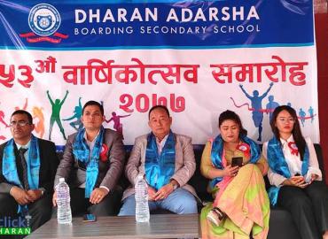 धरान: धरान आदर्श बोर्डिङ सेकेण्डरी स्कुलको ५३ औं वार्षिकोत्सव सम्पन्न भएको छ । वार्षिकोत्सवको अवसरमा विद्यालयका कक्षागत उत्कृष्ट विद्यार्थी र खेलकुदमा विजयी भएकाहरुलाई पुरस्कृत गरिएको थियो । वार्षिकोत्सवको अवसरमा विद्यार्थीहरुले आकर्षक नृत्य तथा सांगीतिक प्रस्तुती दिएका थिए । कार्यक्रममा विद्यालयका ...