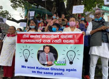 धरान: चार वर्षे कार्यकाल पूरा गरी नेपाल विद्युत प्राधिकरणको कार्यकारी निर्देशकबाट भदौं २८ गते विदा भएका कुलमान घिसिङलाई पुनः नियुक्तीको माग राख्दै शुक्रबार पनि धरानमा प्रदर्शन भएको छ । सामाजिक अभियन्ता हर्क साम्पाङको नेतृत्वमा कुलमानको पक्षमा प्रदर्शन भएको हो । धरान १८ बुद्धचोकबाट निकालिएको ¥या ...