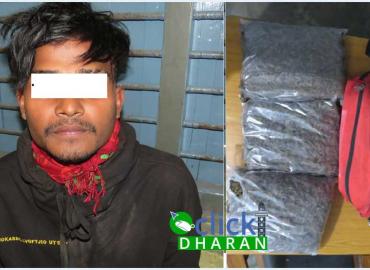 धरान: प्रहरीले धरानको भानुचोकबाट गाँजासहित एक युवालाई पक्राउ गरेको छ । इलाका प्रहरी कार्यालय धरानका अनसार हिजो मध्याह्न १२ बजे धरान २ भानुचोकबाट २३ बर्षीय कमल विष्टलाई गाँजासहित पक्राउ गरेको हो । धनकुटा नगरपालिका वडा नं १४ घर भएका बिष्टको साथबाटत १ किलो ९ सय ग्राम गाँजा पनि वरामद भएको प्रहरीले जनाए ...